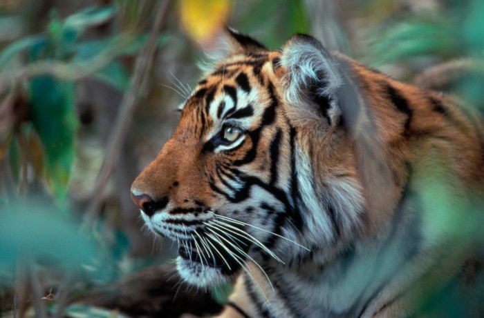 Có tôi, với đôi mắt của tôi bóc vỏ cho sắc thái của màu cam, trắng và sọc đen. Rừng rất dày đặc mà chúng ta có thể là một vài feet từ một răng nanh của chó khổng lồ và sẽ không biết nó. Công ty môi trường